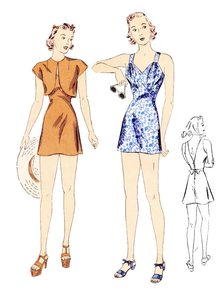 Vintage Sewing Pattern 1930s Ladies Pin Up Bathing Suit Bolero And Kerchief 34 Bust 3043